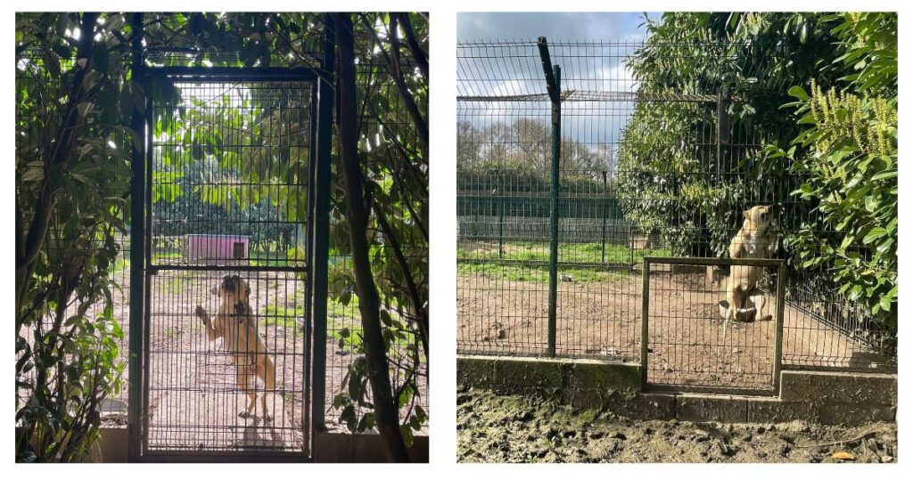 L’association AVA n’a pas vocation à « éduquer » ou « rééduquer » les chiens. Nous ne prétendons donc pas vouloir « transformer » Curtis, et encore moins le rendre « adoptable ». Notre ambition est simplement de donner à ce chien un lieu de quiétude, où sa dangerosité potentielle sera circonscrite, où il pourra « être ce qu’il est », sans risquer la mort, et sans souffrir de sa captivité.