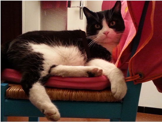 Son loisir préféré : me marcher dessus et, par-dessus tout, grimper sur mon épaule gauche et s’y installer jusqu’à ce que sa chaleur se diffuse dans mon cou et mes épaules