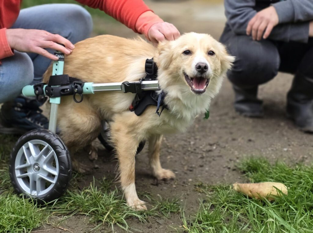 Cette chienne handicapée fait ses premiers pas avec son chariot à roulettes